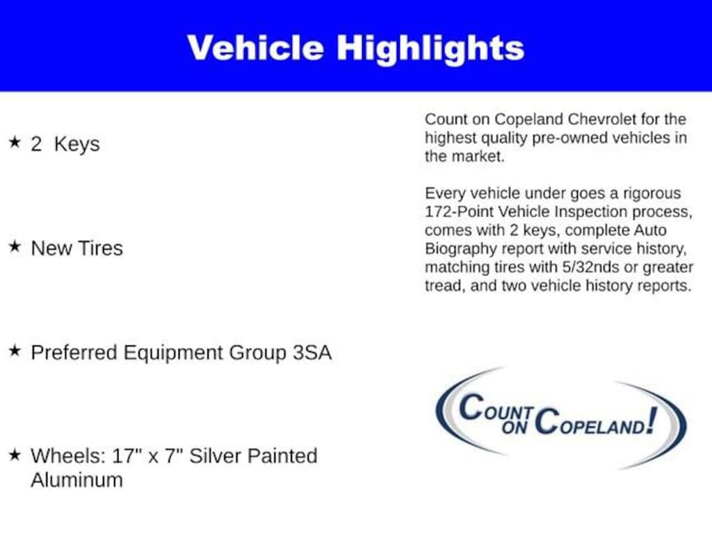 2 Keys, New Tires, Terrain SLE, 4D Sport Utility, AWD, Sterling Metallic, Preferred Equipment Group 3SA, Wheels: 17 x 7 Silver Painted Aluminum. CARFAX One-Owner. GMC Certified Pre-Owned Details:* Warranty Deductible: $0* Limited Warranty: 12 Month/12,000 Mile (whichever comes first) from certified purchase date* Powertrain Limited Warranty: 72 Month/100,000 Mile (whichever comes first) from original in-service date* Vehicle History* 24 months/24,000 miles (whichever comes first) Certified Pre-Owned Scheduled Maintenance Plan and 3 days/150 miles (whichever comes first) Vehicle Exchange Program. SiriusXM 3-month trial subscription* 172 Point Inspection* Roadside Assistance* Transferable WarrantyCOUNT ON COPELAND for TOP QUALITY pre-owned vehicles.