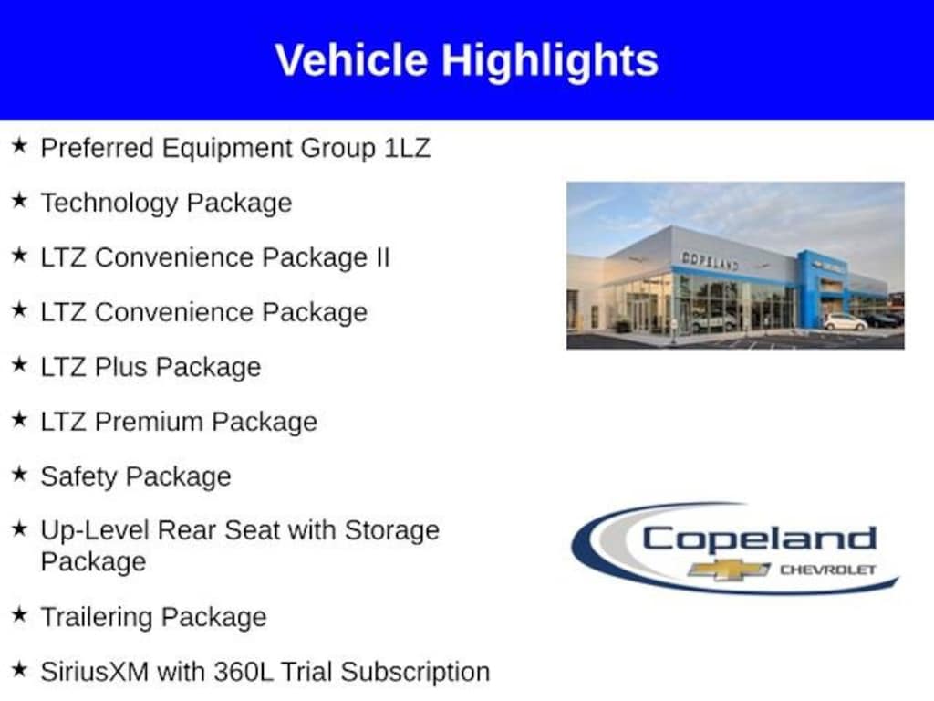 - LTZ Convenience Package, LTZ Convenience Package II, LTZ Plus Package, LTZ Premium Package