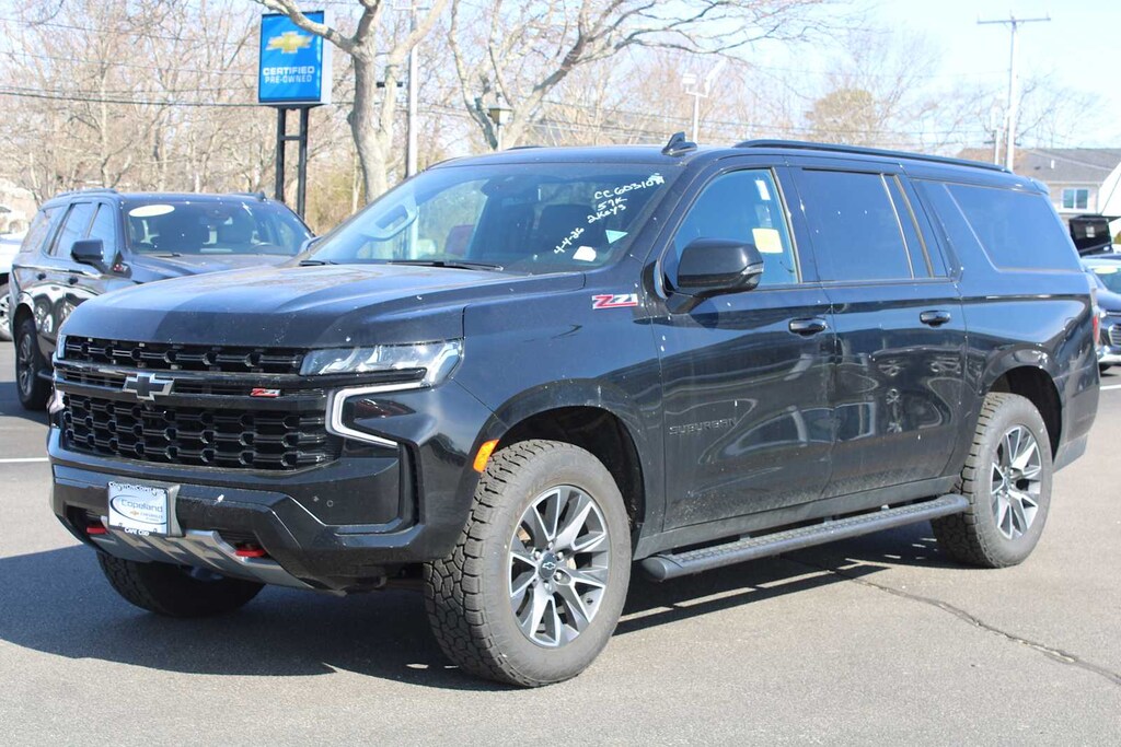 LUXURY PACKAGE includes (WPD) Driver Alert Package content, (UV2) HD Surround Vision, (UKK) Rear Pedestrian Alert, (A45) memory settings, (DXR) outside heated power-adjustable, power-folding, body-color mirrors with driver-side auto-dimming and integrated turn signal indicators, (N38) power tilt and telescopic steering column, (KI3) heated steering wheel, (KA6) second row outboard heated seats, (ATT) second row power 60/40 split-folding bench seats and (AS8) third row power 60/40 split-folding bench seats, SUNROOF, POWER PANORAMIC, DUAL-PANE, TILT-SLIDING with express-open and close and power sunshade, SEATS, SECOND ROW BUCKET, POWER RELEASE, AUDIO SYSTEM, CHEVROLET INFOTAINMENT 3 PREMIUM SYSTEM WITH GOOGLE BUILT-IN 10.2" diagonal HD color touchscreen, includes multi-touch display, AM/FM stereo, Bluetooth® streaming audio for music and most phones; featuring wireless Android Auto® and Apple CarPlay® capability for compatible phones, advanced voice recognition, in-vehicle apps, personalized profiles for infotainment and vehicle settings.) (STD), STEERING WHEEL, HEATED, ENGINE, 5.3L ECOTEC3 V8 with Dynamic Fuel Management, Direct Injection and Variable Valve Timing, includes aluminum block construction (355 hp [265 kW] @ 5600 rpm, 383 lb-ft of torque [518 Nm] @ 4100 rpm) (STD), TRANSMISSION, 10-SPEED AUTOMATIC electronically controlled with overdrive, includes Traction Select System including tow/haul (STD), DRIVER ALERT PACKAGE includes (UKC) Lane Change Alert with Side Blind Zone Alert and (UFG) Rear Cross Traffic Alert, SUSPENSION, PREMIUM SMOOTH RIDE (STD).