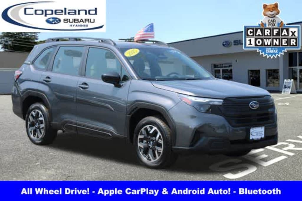 All Wheel Drive, Back-Up Camera, Satellite Radio, iPod/MP3 Input, Bluetooth®, Aluminum Wheels, Dual Zone A/C, Apple CarPlay®, Smart Device Integration, Brake Actuated Limited Slip Differential. Rear Spoiler, MP3 Player, Keyless Entry, Child Safety Locks. Serviced here, Non-Smoker vehicle, Originally bought here Subaru Forester with Magnetite Gray Metallic exterior and Gray interior features a 4 Cylinder Engine with 180 HP at 5800 RPM*.